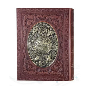 شاهنامه وزیری گلاسه چرم جعبه دار برجسته پلاک فلزی طرح مس نفیس