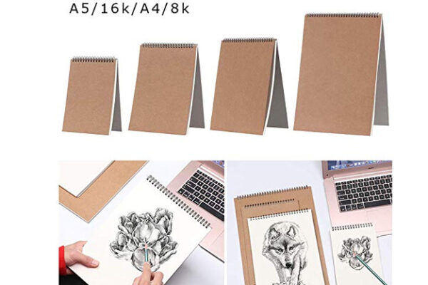 - A5 (14.8 x 21 cm): کوچکتر و قابل حملتر از A4، مناسب برای اسکچهای سریع، یادداشتبرداری هنری و استفاده در سفر. (کلیدواژه: دفتر نقاشی A5، اسکچ بوک جیبی)