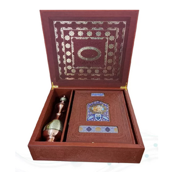 پکیج این مجموعه شامل یک گلدان و تنگ خاتمکاری اصفهان است که در کنار کتاب، جلوهای هنری و فرهنگی پدید میآورد. ترکیب شعر، چرم و هنر خاتم، هدیهای فاخر و برجسته برای مدیران، اساتید، فرهنگیان و دوستداران ادب فارسی خواهد بود.