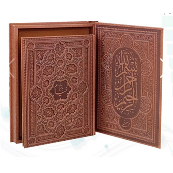 جلد این کتاب از چرم طبیعی برجسته با دو طرف دوبل ساخته شده که نماد ظرافت، دوام و اصالت ایرانی است.
