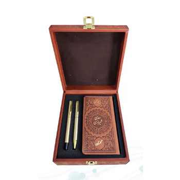 - همراهی خودکار و رواننویس لوکس: یکی از نقاط قوت این مجموعه، همراهی یک خودکار و یک رواننویس نفیس با حکاکی اختصاصی است. این اقلام تکمیلکننده، آن را به یک ست هدیه کامل تبدیل میکند که کاربرد روزمره و زیبایی دکوراتیو دارد.