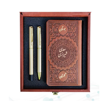 خرید گلستان و بوستان نفیس کیمیای اندیشه | هدیه مدیریتی چرم پالتویی با خودکار و رواننویس